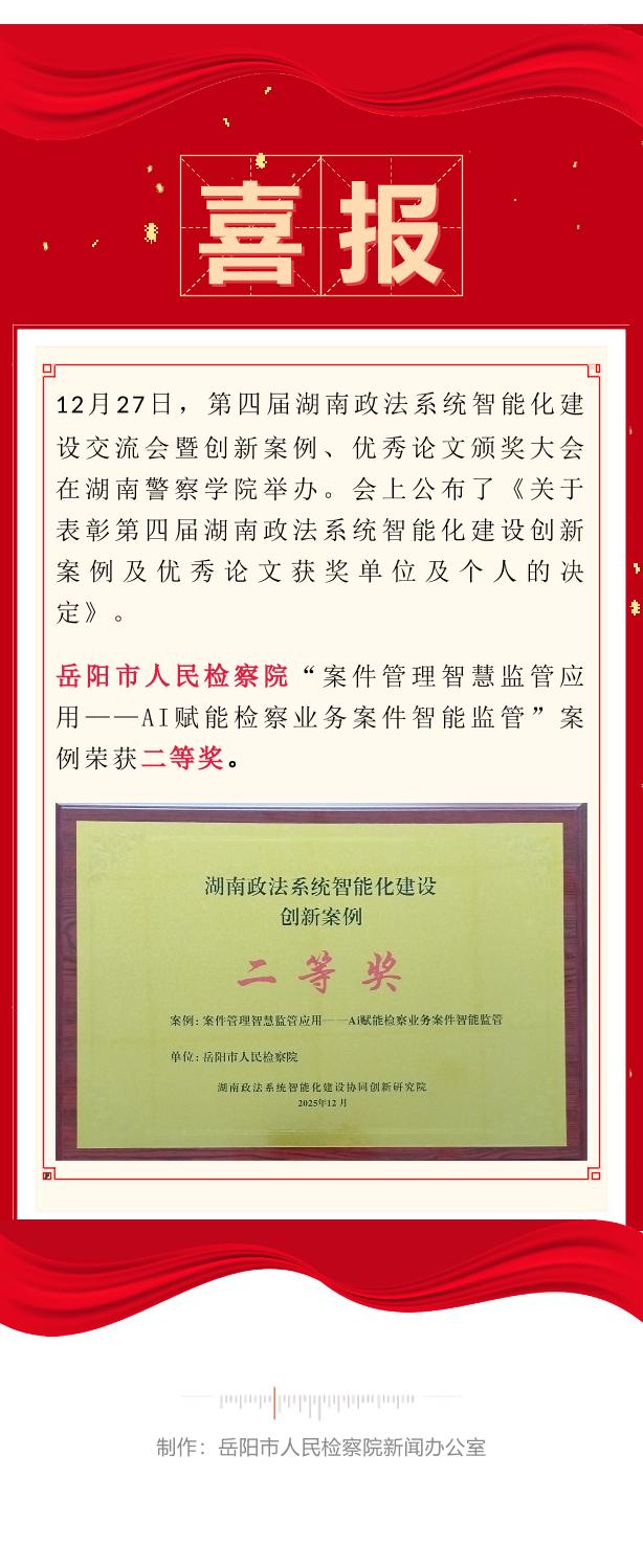 年终喜讯!岳阳检察案管智慧监管应用获省级二等奖