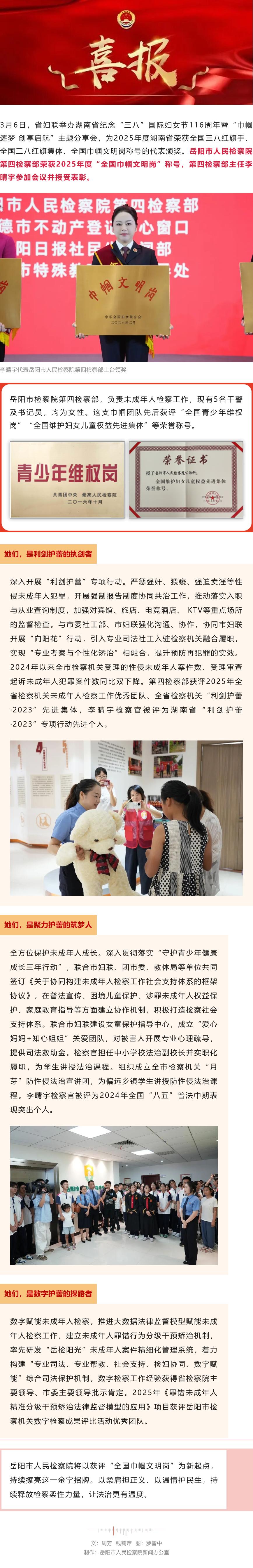 喜报丨全国表彰!岳阳检察荣获“全国巾帼文明岗”称号